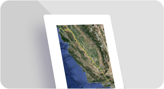 Figure 25. Overview of Hyperloop route from Los Angeles to San Francisco. 4.4.1. Route Optimization In order to avoid bend radii that would lead to uncomfortable passenger inertial accelerations and hence limit velocity, it is necessary to optimize the route. This can be achieved by deviating from the current highway system, earth removal, constructing pylons to achieve elevation change or tunneling. The proposed route considers a combination of 20, 50, and 100 ft (6, 15, and 30 m, respectively) pylon heights to raise and lower the Hyperloop tube over geographical obstacles. A total tunnel length of 15.2 miles (24.5 km) has been
