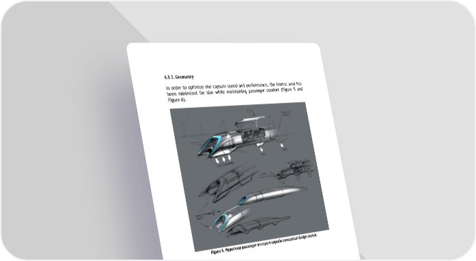 4.1.1. Geometry In order to optimize the capsule speed and performance, the frontal area has been minimized for size while maintaining passenger comfort (Figure 5 and Figure 6). Figure 5. Hyperloop passenger transport capsule conceptual design sketch.